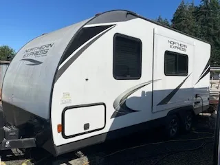 Embark on your next adventure with the 2022 Gulf Stream Northern Express, now available for rent! This luxurious travel trailer combines modern amenities with the comfort of home, making it the perfect choice for families, couples, or solo travelers seeking a memorable getaway. Step inside and be greeted by a spacious, well-designed interior featuring a cozy queen-sized bed, a fully-equipped kitchen, and a versatile dinette that converts into additional sleeping space. The modern kitchen boasts a refrigerator, microwave, stove/ovan, and ample storage, allowing you to prepare delicious meals on the go. Stay connected and entertained with the built-in entertainment system, complete with a flat-screen TV and Bluetooth speakers. The Northern Express also offers a full bathroom with a shower, ensuring you have all the comforts you need while on the road. Designed with convenience in mind, this travel trailer is lightweight and easy to tow, making it accessible for a variety of vehicles. The exterior features an electric awning with LED lighting, providing the perfect spot to relax and enjoy the great outdoors. Don't miss out on the opportunity to elevate your travel experience. Book the 2022 Gulf Stream Northern Express today and start creating unforgettable memories!